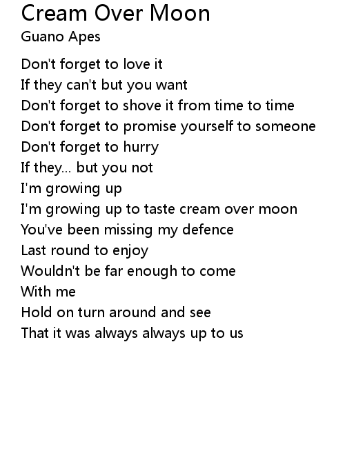 | I'm growing up to taste cream over moon | |