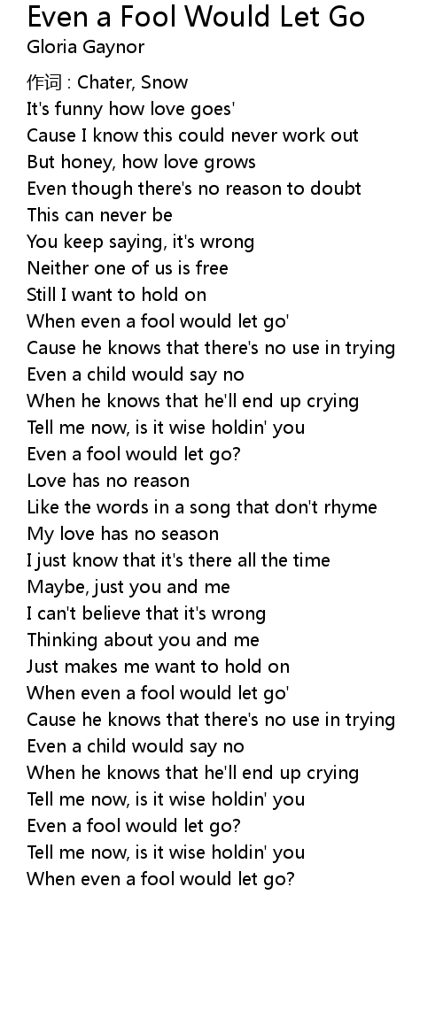 | Song | Even a Fool Would Let Go |