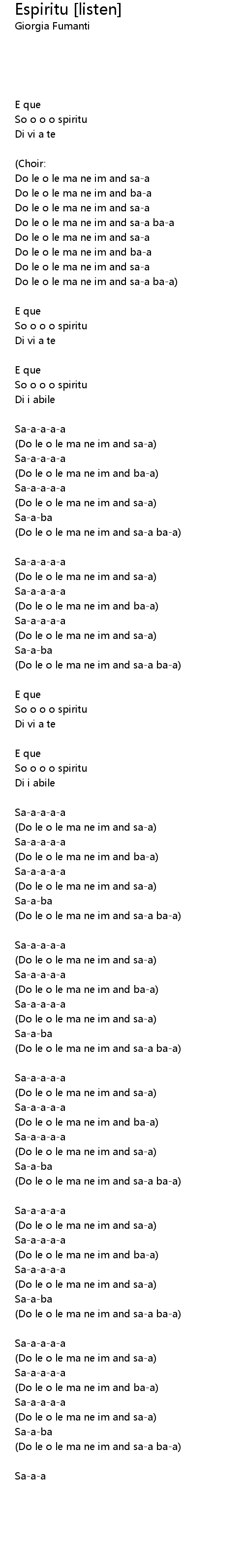 | [01:11.68] | Do le o le ma ne im and saa baa |