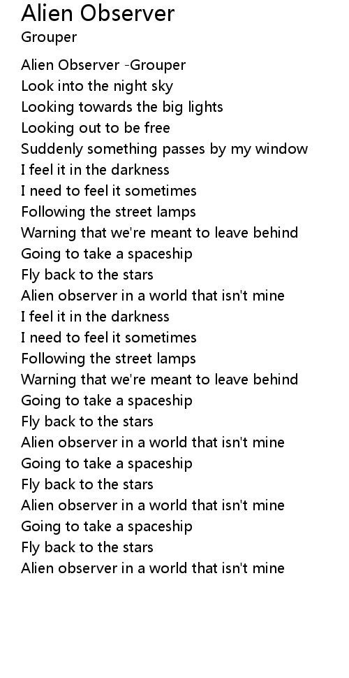 | [01:35.76] | Alien observer in a world that isn't mine |