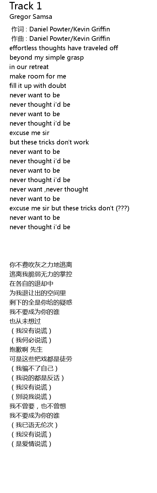 | [00:00.000] | 作词 : Daniel Powter/Kevin Griffin |