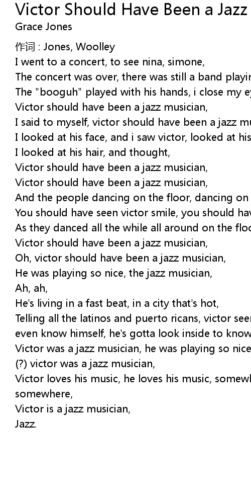 | Victor was a jazz musician, he was playing so nice, victor was a jazz musician, (?) victor was a jazz musician, | |