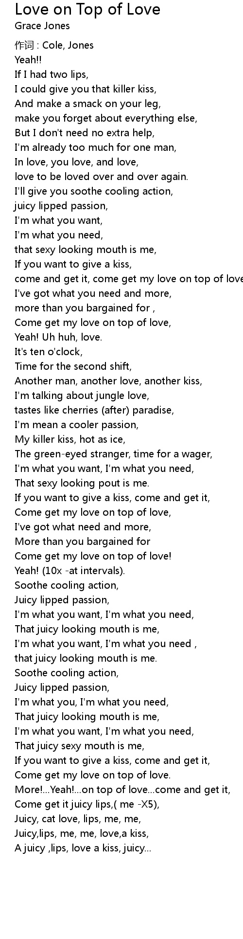 | Come get my love on top of love, | |
