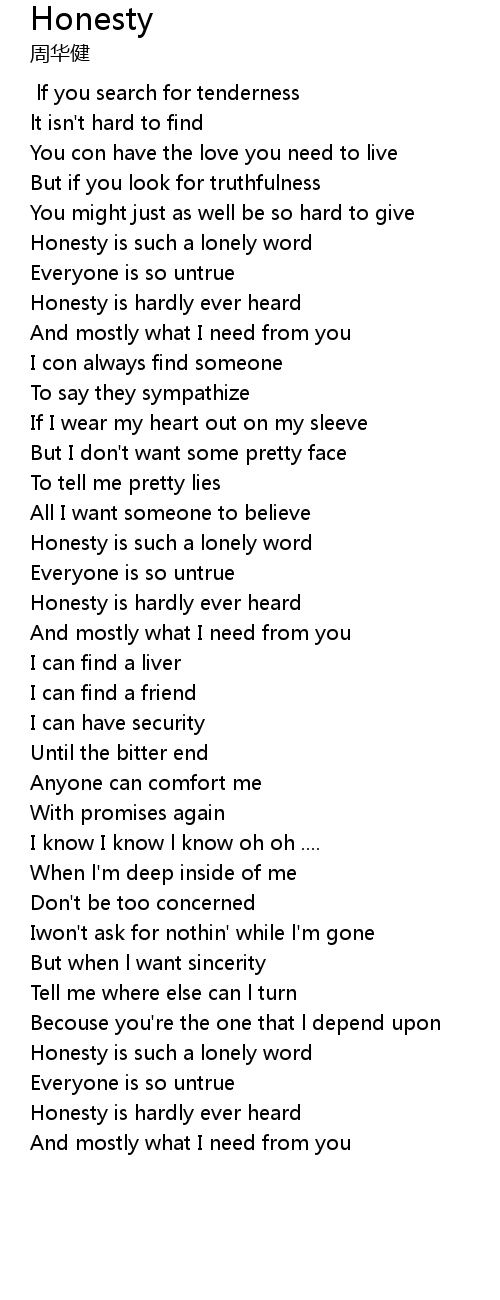 | [00:35.840] | Honesty is such a lonely word |