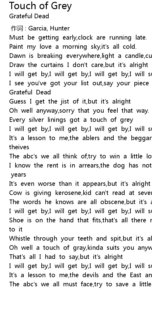 | [00:43.464] | I will get by,I will get by,I will get by,I will survive. |