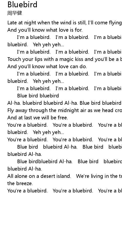 | Al-ha. bluebird bluebird Al-ha. Blue bird bluebird Al-ha. | |