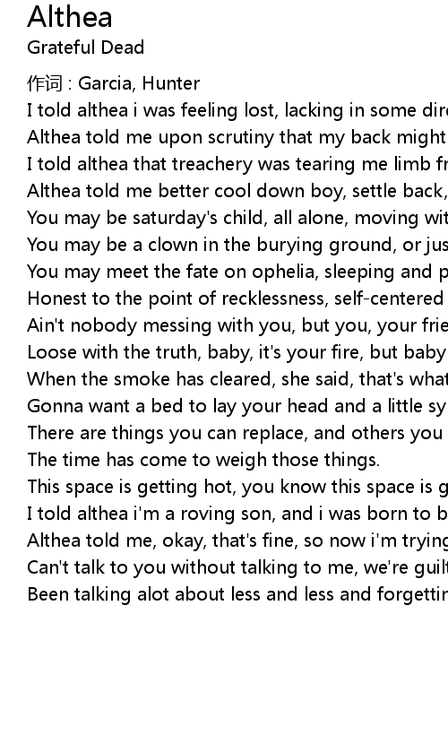 | Song | Althea |