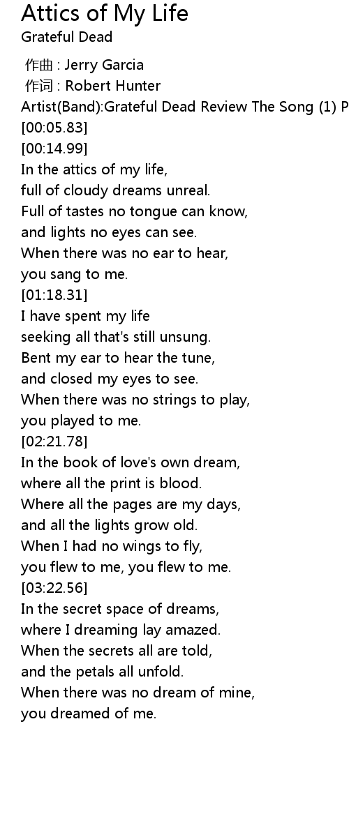 | [00:04.64] | Artist Band: Grateful Dead Review The Song 1 Print the Lyrics |