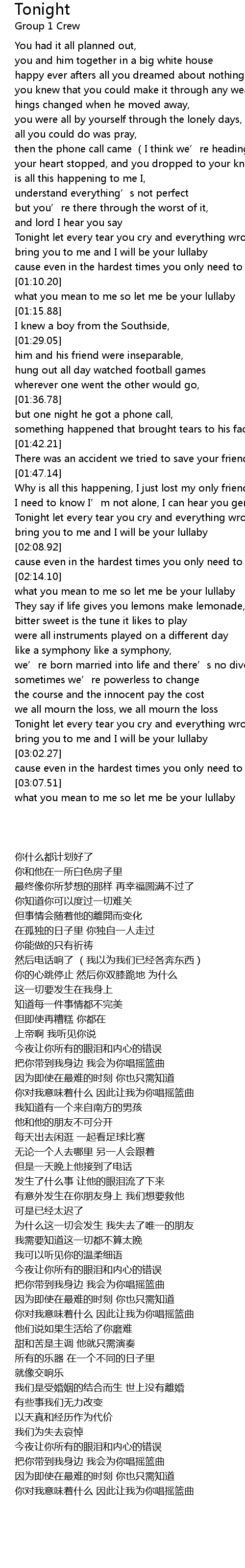 | [00:55.85] | Tonight let every tear you cry and everything wrong inside, |