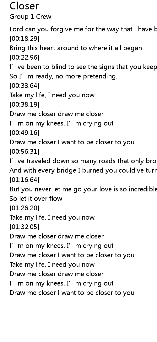 | [02:28.53] | Draw me closer I want to be closer to you |