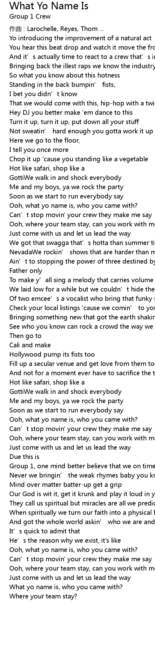 | Can' t stop movin' your crew they make me say | |
