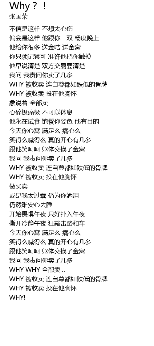 | [03:47.400] | WHY 被收卖 连自尊都如跌低的骨牌 |