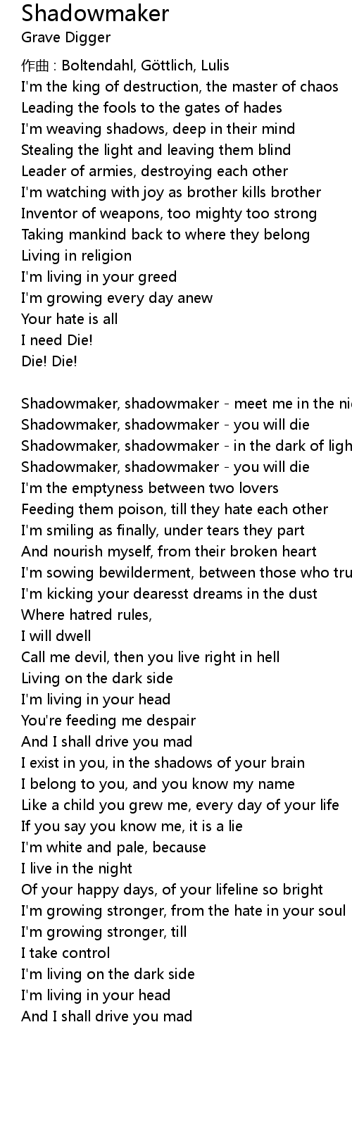 | Shadowmaker, shadowmaker - in the dark of light | |