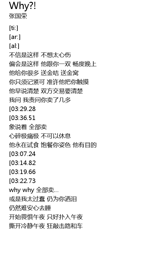 | [04:18.03][03:36.51][02:41.51] | why 被收卖 投在他胸怀 |