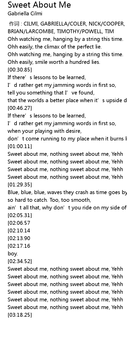 | [02:34.72] | Sweet about me, nothing sweet about me, Yehh |
