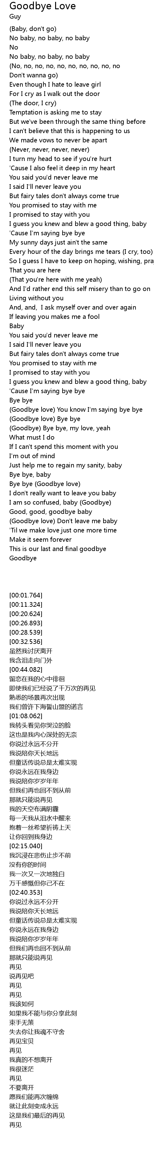 | [04:25.600] | (Goodbye love) Don't leave me baby |