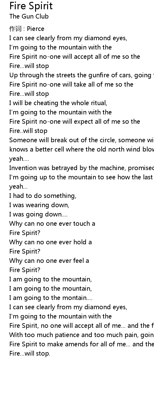 | Fire Spirit, no one will accept all of me... and the fire...will stop... | |