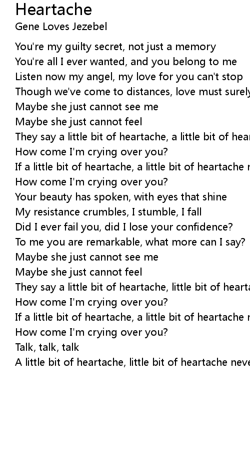 They say a little bit of heartache, a little bit of heartache never hurt anyone |