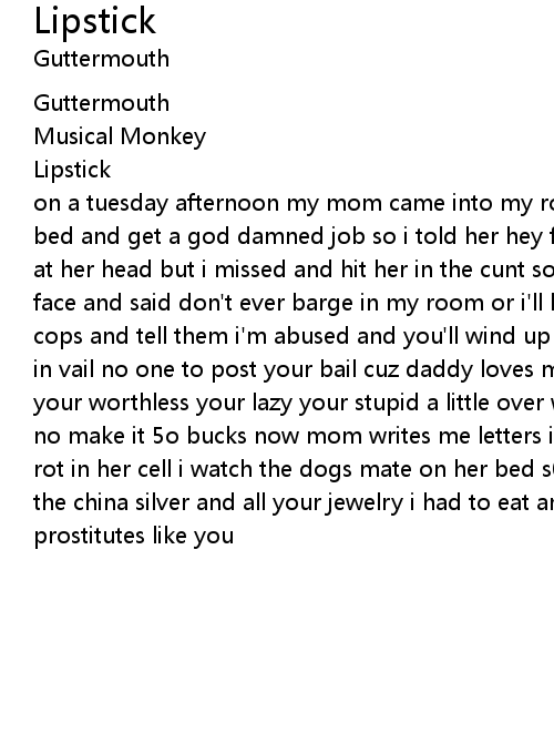 on a tuesday afternoon my mom came into my room and said get the fuck up outta bed and get a god damned job so i told her hey fuck you yom and threw the phone at her head but i missed and hit her in the cunt so i slamed the door in her face and said don't ever barge in my room or i'll kick your ass and call the cops and tell them i'm abused and you'll wind up in jail while i go snowboarding in vail no one to post your bail cuz daddy loves me more he says that your a your worthless your lazy your stupid a little over wieght now give me 20 bucks no make it 5o bucks now mom writes me letters i write return to sender let her rot in her cell i watch the dogs mate on her bed s0 sorry mommy i had to pawn the china silver and all your jewelry i had to eat and rent a bunch of prostitutes like you |