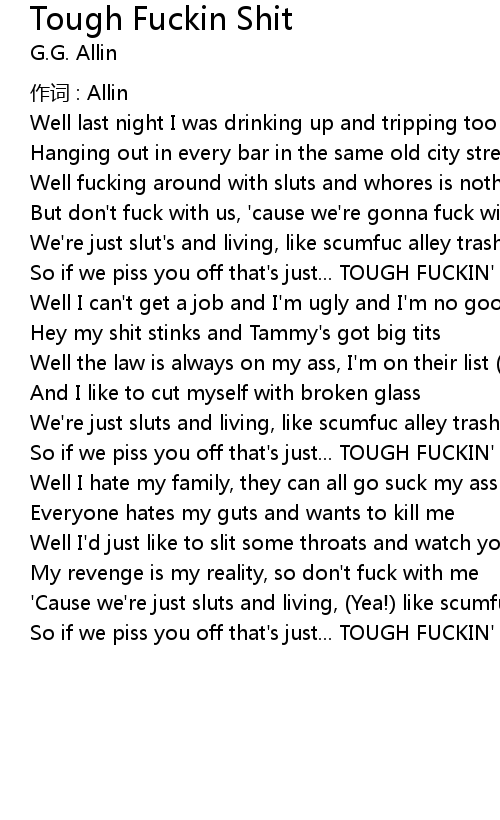 | ' Cause we' re just sluts and living, Yea! like scumfuc alley trash | |