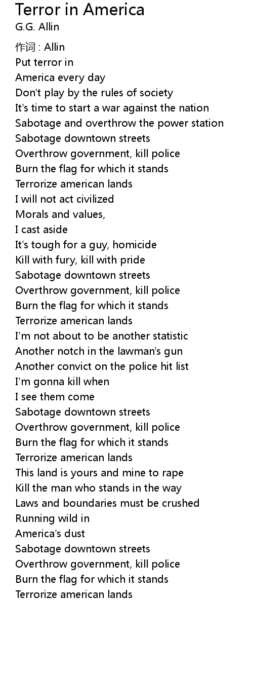 | Song | Terror in America |