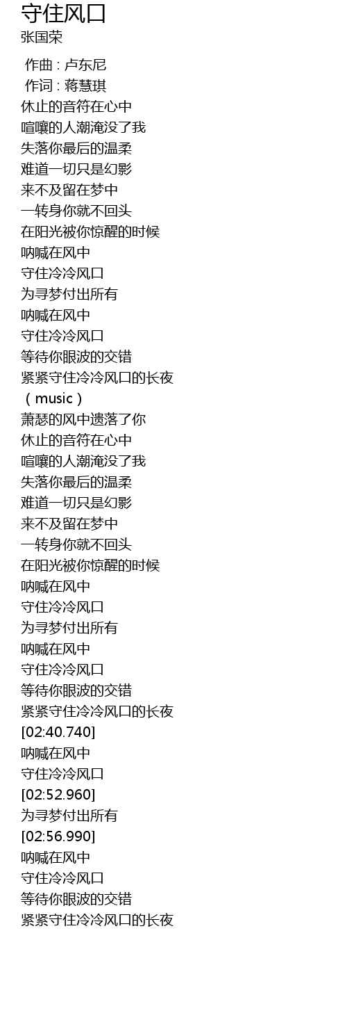 | [03:04.990] | 紧紧守住冷冷风口的长夜 |