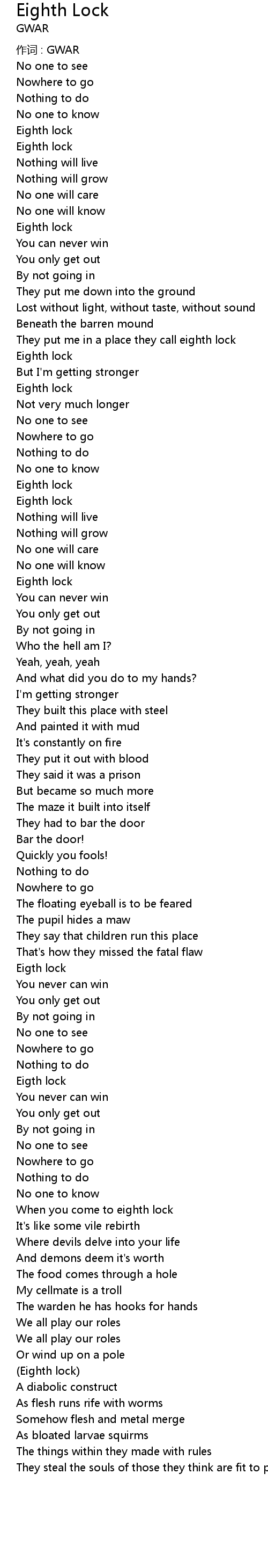 | 作词 : GWAR | |