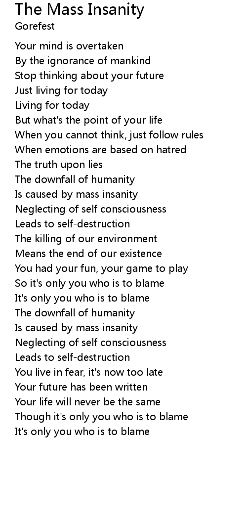 Is caused by mass insanity |