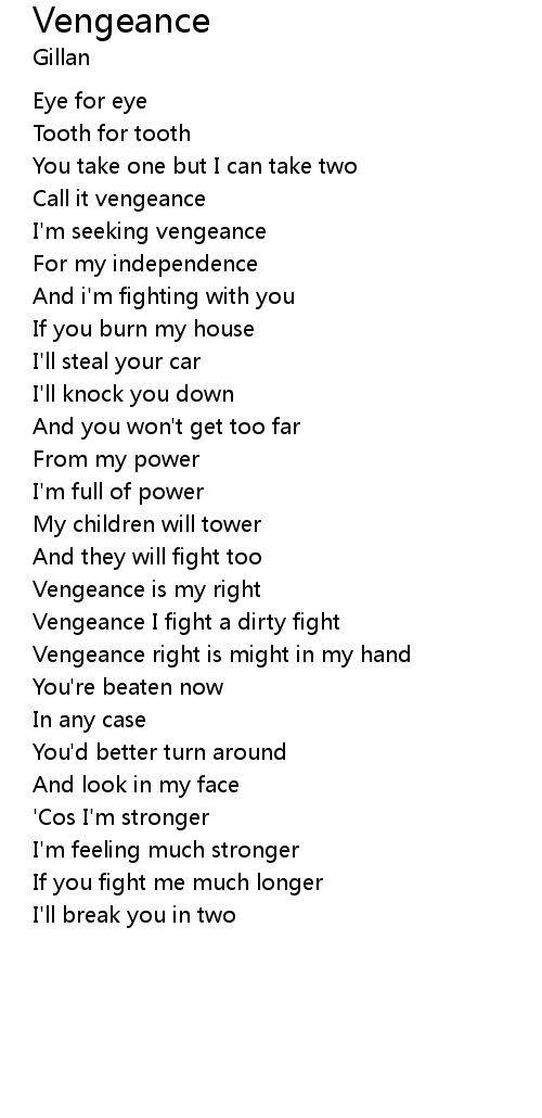 Vengeance I fight a dirty fight |