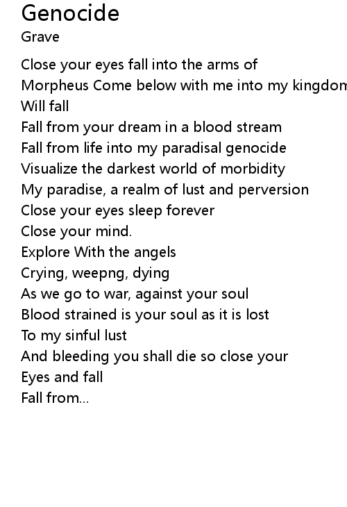 | Fall from life into my paradisal genocide | |