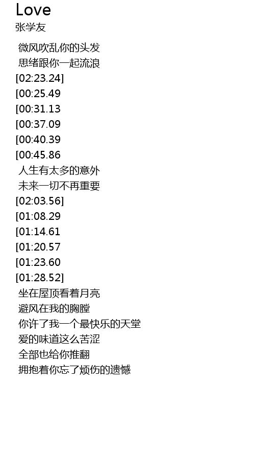 | [02:19.08][01:23.60] | 给我一生不变的锺爱 |