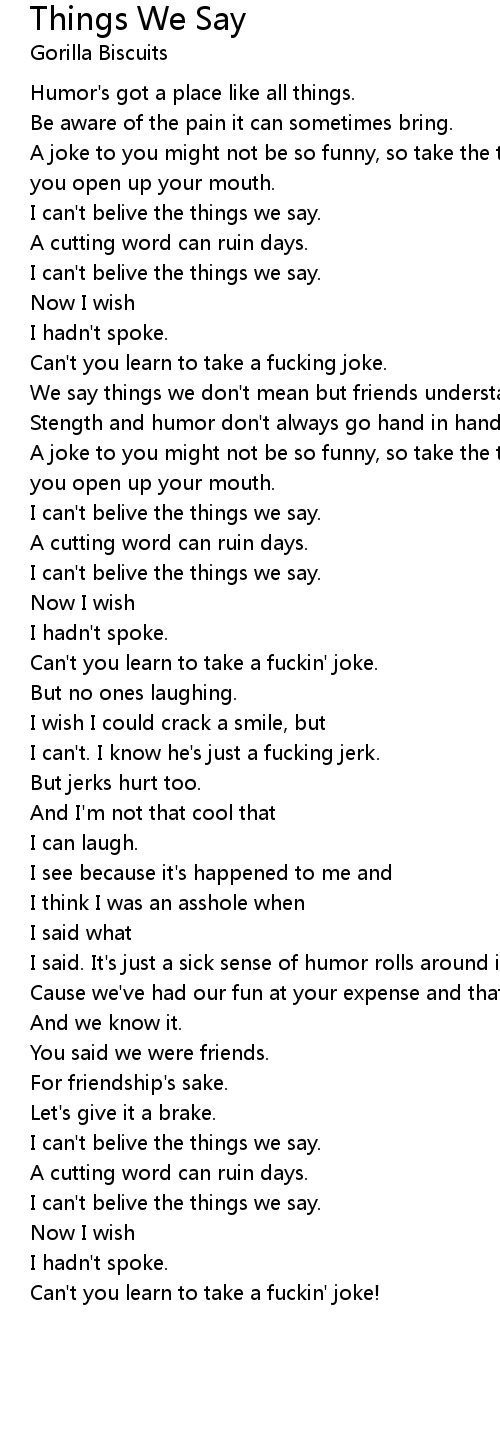 I can't belive the things we say. |