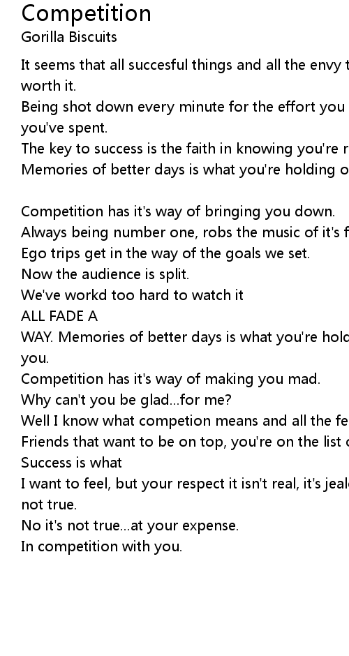 Well I know what competion means and all the feelings that it brings. |