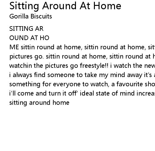 | ME sittin round at home, sittin round at home, sittin round at home watchin the pictures go. sittin round at home, sittin round at home, sittin round at home watchin the pictures go freestyle!! i watch the news at work, i do it every day i always find someone to take my mind away it's a family show top of the stereo something for everyone to watch, a favourite show yo!! whatever turns you on, i'll come and turn it off' ideal state of mind increase your position huktoo sitting around home |