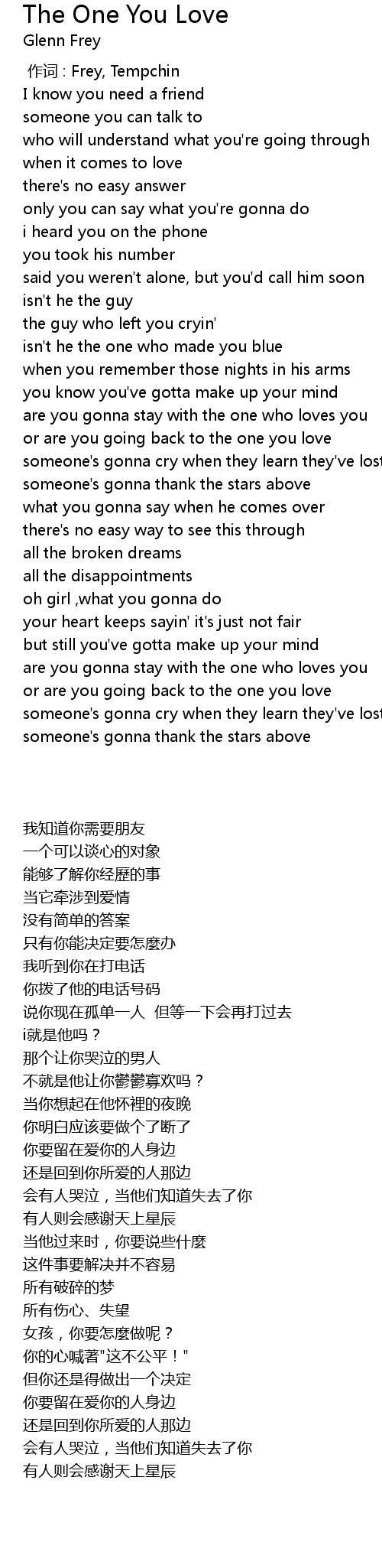 | [01:41.420] | are you gonna stay with the one who loves you |
