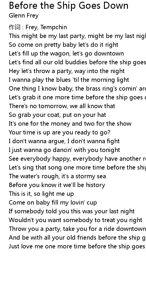 | Let' s sing that song one more time before the ship goes down | |
