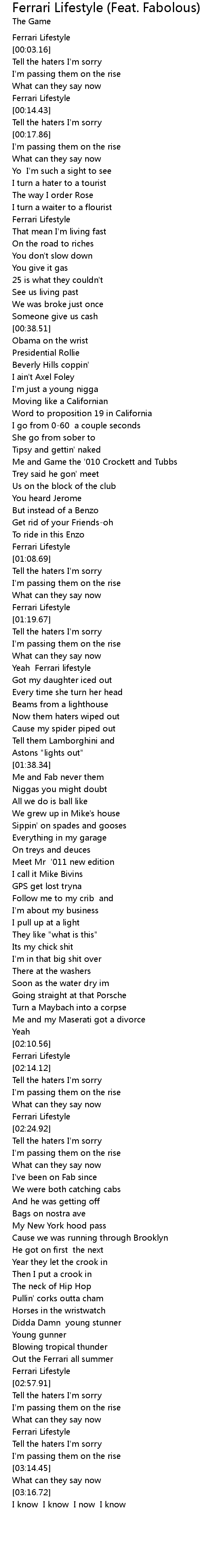 Ferrari Lifestyle (Feat. Fabolous) (Prod. By D.A.Dorman) Lyrics