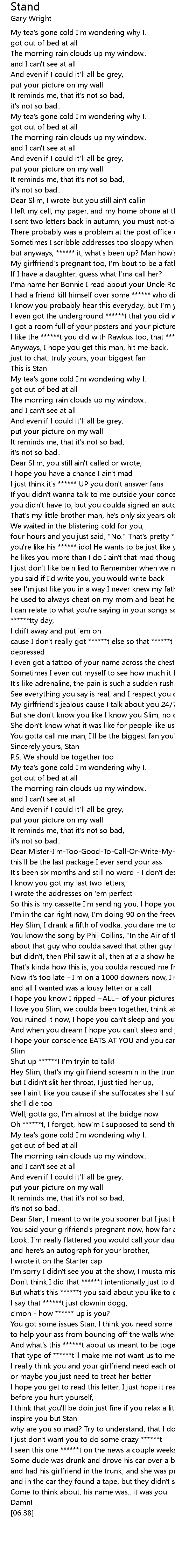 Dear Slim, you still ain't called or wrote, |