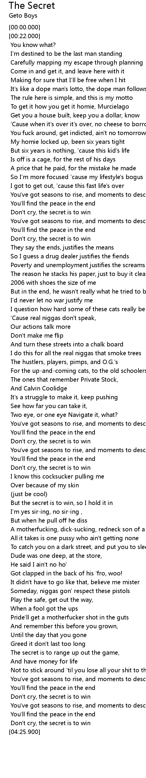 But the secret is to win, so I hold it in |