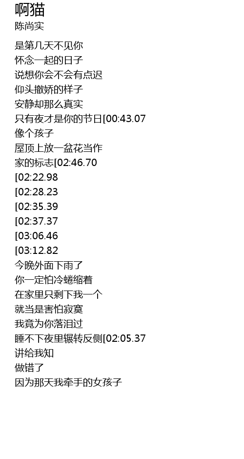 | [00:53.95]家的标志[02:46.70][02:21.17][00:58.87] | 如果这次 |