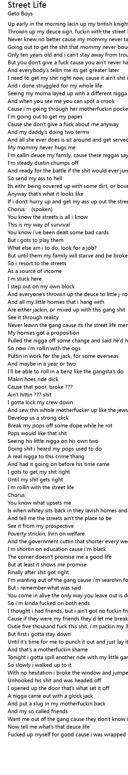 | So i resort to the streets | |