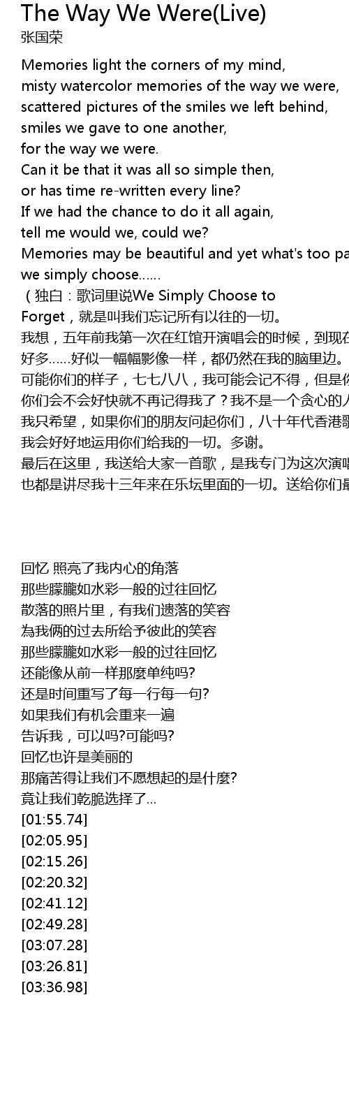 | [00:55.65] | for the way we were. |