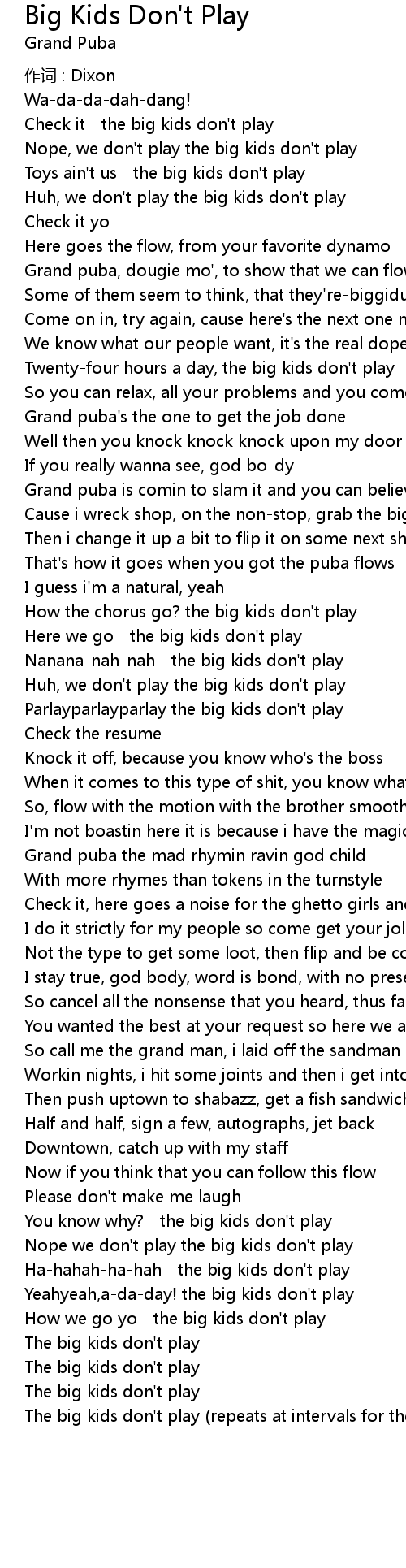 | The big kids don' t play repeats at intervals for the rest of the song |