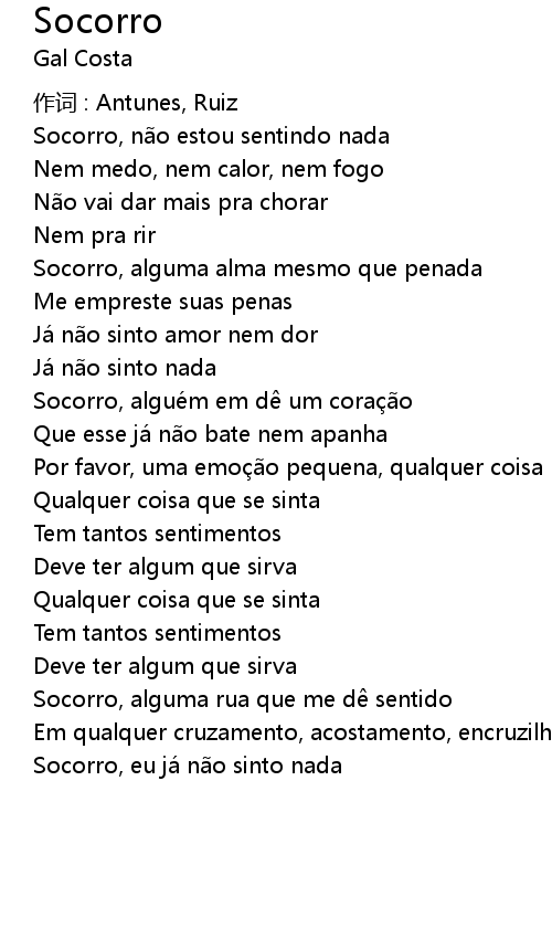 | Socorro, eu já não sinto nada |