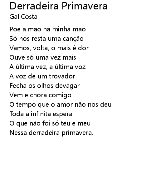 | Song | Derradeira Primavera |