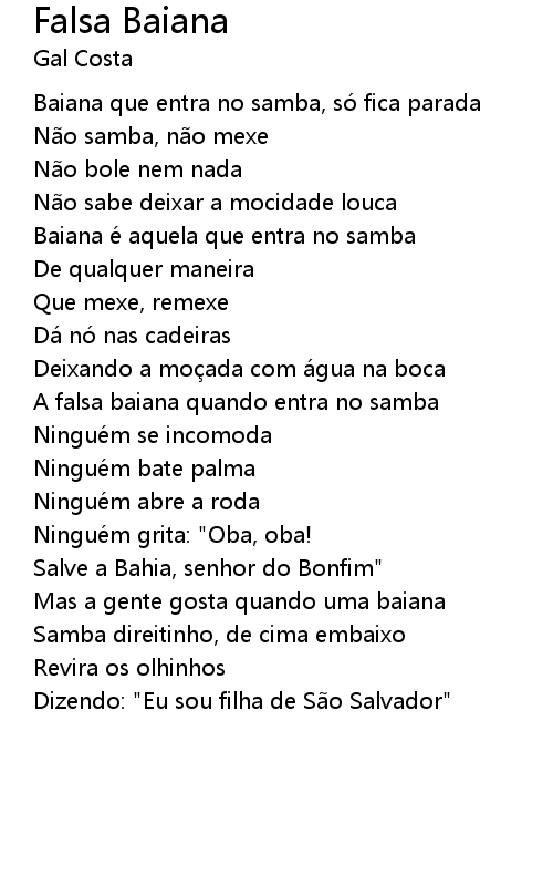 | Baiana é aquela que entra no samba | |