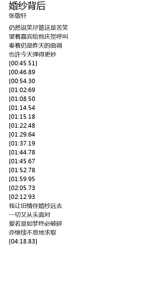 | [03:22.41][01:45.67] | 婚纱中背影双双远去 |