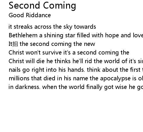 | Christ won' t survive it' s a second coming the | |