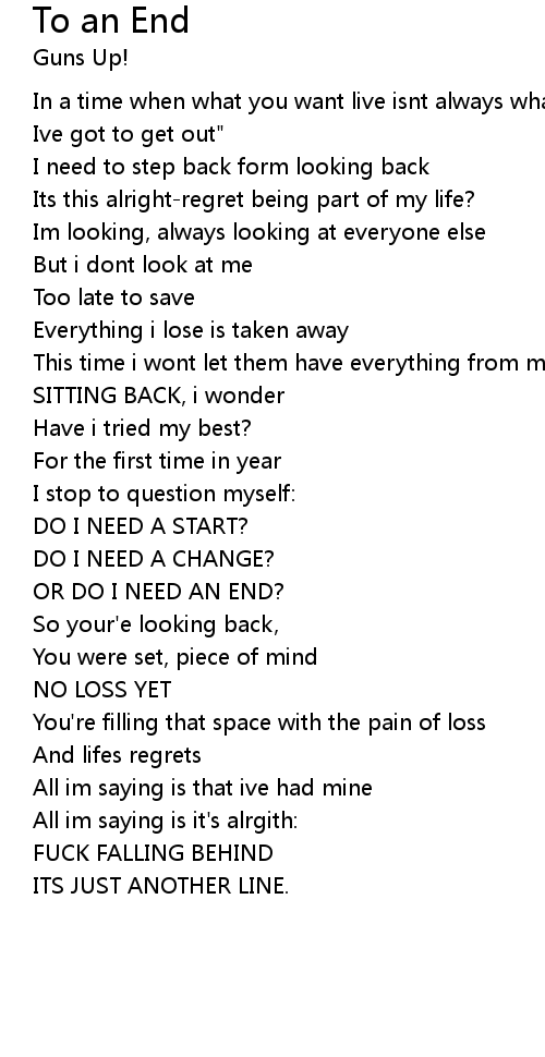 | OR DO I NEED AN END? | |