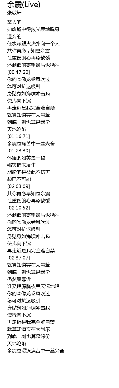 | [03:21.59] | 余震是浸没痛苦中一丝兴奋 |